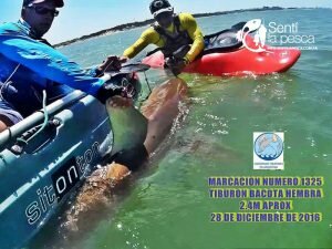 Por último para aquellos que buscan adrenalina y se animan a pescar los grandes tiburones, tenemos que pensar en equipos “extra heavy “cañas de 80 y 120 lbs. Reeles tipo Penn Senator 6/0 cargados con nylon del 0.80mm y línea de un anzuelo num 14/0 serie Mustad 3406.